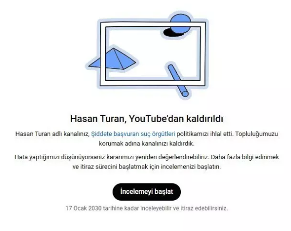 Filistin Dostluk Grubu Başkanı Hasan Turan'ın YouTube kanalı kapatıldı’ YouTube 'İsrail şiddetine evet, şiddeti paylaşana hayır' dedi