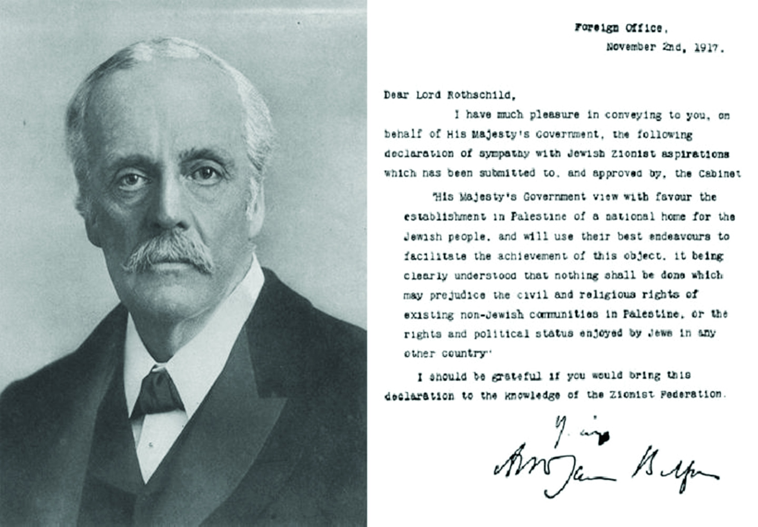 Bölgenin 1917'de İngiliz mandasına girmesiyle Filistin'e Yahudi göçü daha da hızlandı. İngiltere Dışişleri Bakanlığının 1917'de yayımladığı ve Yahudilerin Filistin'de devlet kurmasını öngören "Balfour Deklarasyonu" ile İngilizler, İsrail'in kurulmasına desteklerini ilan etti.
