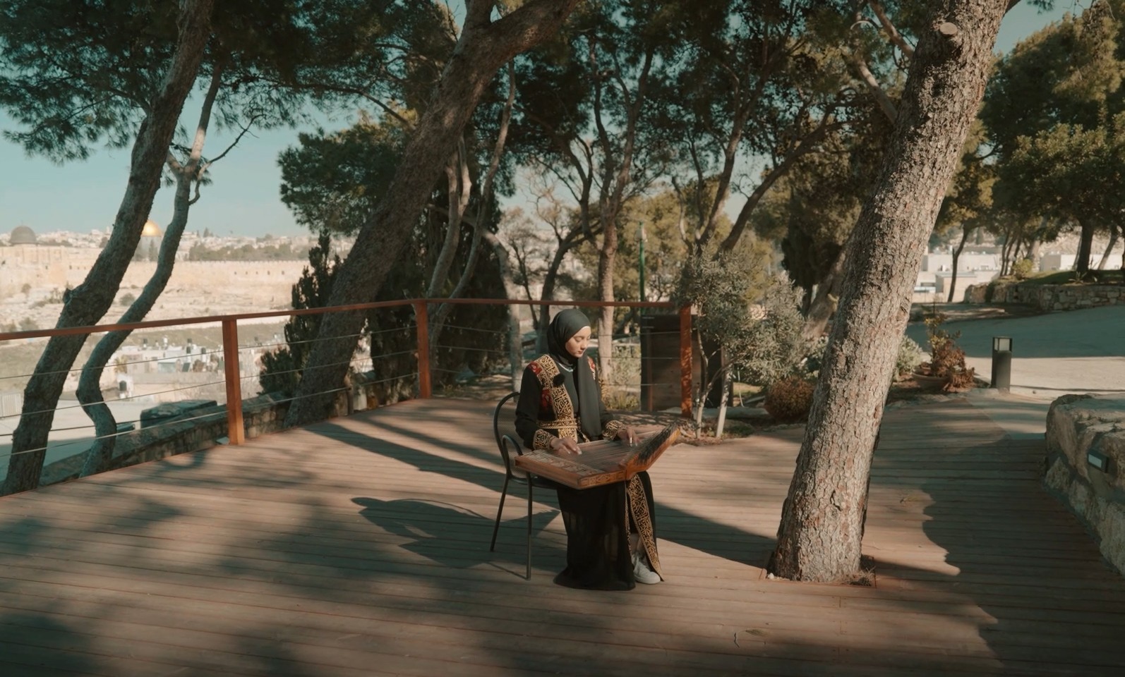 Belgeselin ikinci kahramanı ise Kudüs’te yaşayan 18 yaşındaki kanun sanatçısı Sadin Tavil. Genç yaşına rağmen müziğini bir sesleniş biçimine dönüştüren Tavil, kanunuyla dile getirilemeyen acıları ve özlemleri dillendiriyor. Müziği, yalnızca bir sanat eseri değil; aynı zamanda Filistinli kadınların, çocukların ve yitirilmiş hayatların ortak dili.