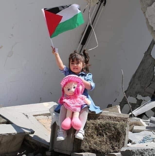 İşgalci İsrail güçleri tarafından yıkılan evlerinin enkazından, Filistin bayrağını kaldıran Filistinli bir kız çocuğunun görüntüsü yüreklere dokundu.