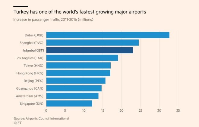 Ülkede yayın yapan Financial Times Gazetesi, son 15 yılda THY'nin artan destinasyonlarına dikkat çekti.