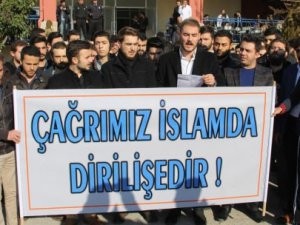 Yaklaşık 200 kişilik grup yürüyüş boyunca ODTÜ’de namaz kılan öğrencilerin karşıt görüşlü öğrenciler tarafından fiziki saldırıya uğramasını protesto etti. Ellerinde ‘Çağrımız İslamda, Dirilişedir.’ Yazılı afiş taşıyan grup üyeleri Trakya Üniversitesi’nin yemekhanesi Menza önünde basın açıklaması yaptı.