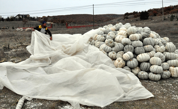 "Bu yıl geçen seneye göre verim daha yüksek. İstanbul, Bursa ve İzmir başta olmak üzere birçok kente bal kabağı satıyoruz. En dayanıklı ve kaliteli kabak Eskişehir'de üretiliyor. Eskişehir kabağı verim olarak düşük ama kalite ve dayanıklılık açısından yüksektir. Ama bu yıl üreticilerimiz umduğunu bulamadı. Bölgemizde üretilen kabağın yüzde 50'si elde kaldı. Önceki yıllarda kasım ayına kadar herkes kabağını satardı. Geçen yıl 50 kuruşa alıcı bulan bal kabağı bu yıl 25 kuruşa satılmıyor. Üretici fiyat gözetmeksizin kabağını elden çıkaracak ama alıcı gelmiyor. Hayvanı olanlar ise kabağı hayvanlara yediriyor."