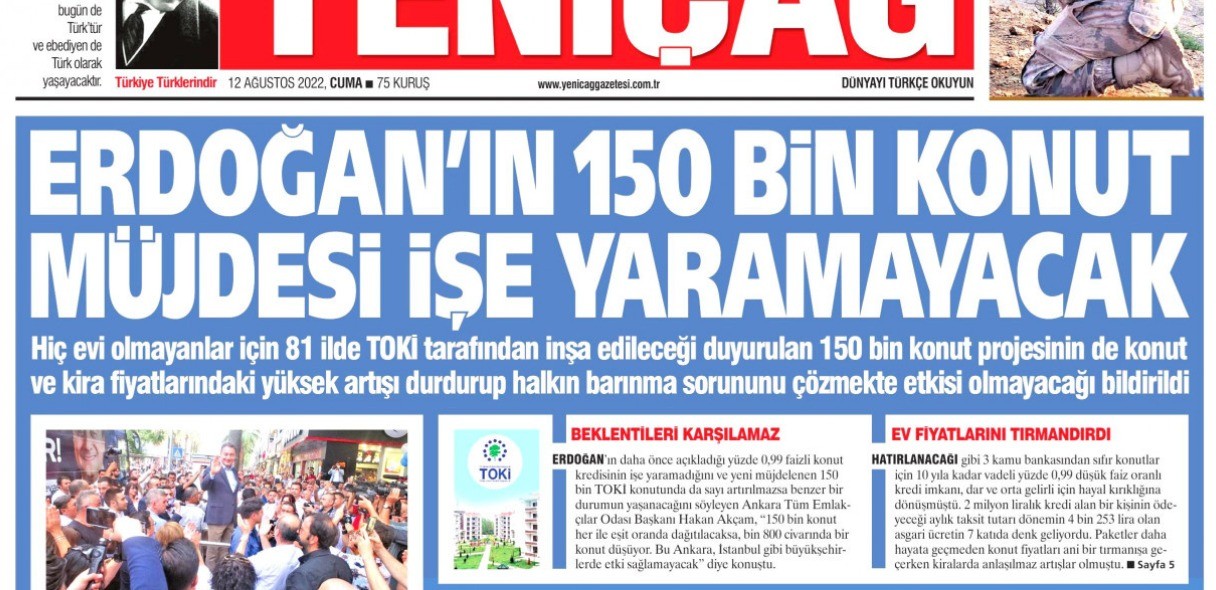 İYİ Parti'nin yayın organı Yeniçağ, gayrimenkul baronlarının fiyatlarını indirmelerine neden olacak 150 bin konut projesini lekelemeye kalkıştı.