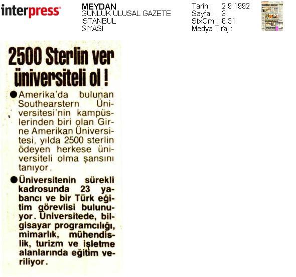 Tercüman gazetesi ise 2 Eylül 1992 tarihli nüshasında ‘2500 sterlin ver üniversiteli ol’ başlığını atarak ÖSYM’de denkliği olmayan Kıbrıs üniversitelerinin reklamını yapmıştı.