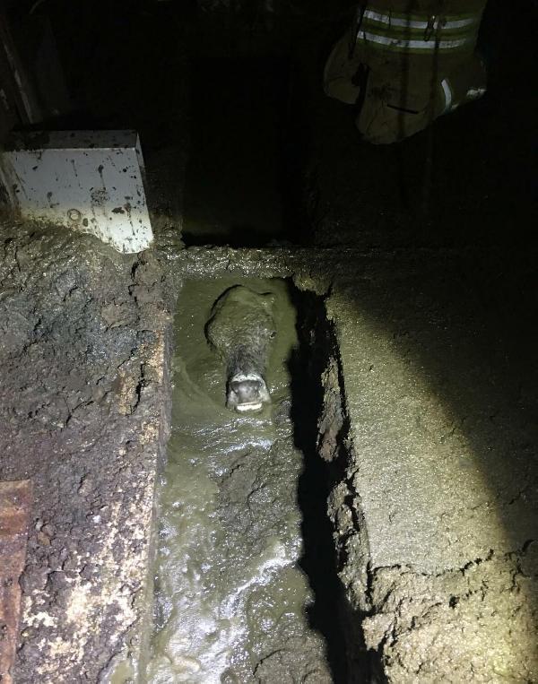 İzmir'in Tire ilçesinde, ahırın içindeki foseptiğe düşen gebe inek, itfaiye ekipleri tarafından kurtarıldı.