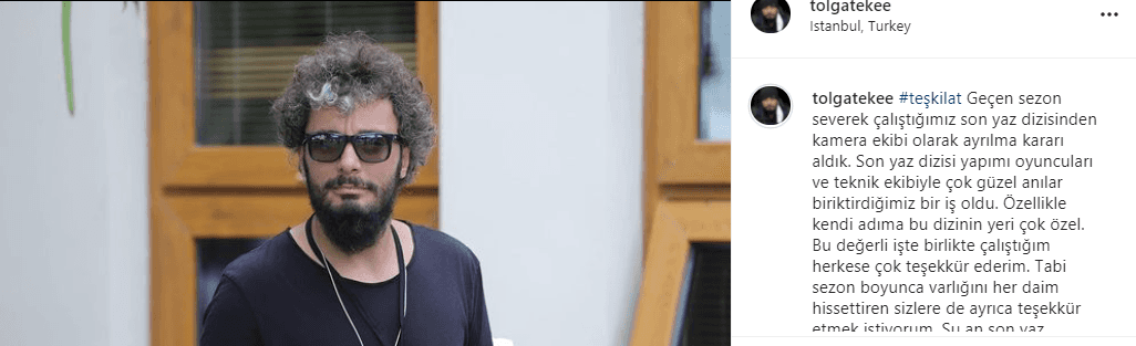 Bu kez Son Yaz’ın kamera ekibinde yer alan Tolga Teke, ekip olarak Teşkilat’a geçtiklerini duyurdu.