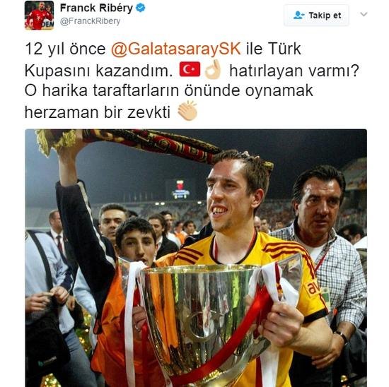 Ribery, 2005 yılında Galatasaray formasıyla Fenerbahçe'yi 5-1 mağlup ederek aldıkları Türkiye Kupası'nı hatırlatarak, "12 yıl önce Galatasaray ile Türk Kupasını kazandım. Hatırlayan var mı? O harika taraftarların önünde oynamak herzaman bir zevkti" ifadelerini kullandı.