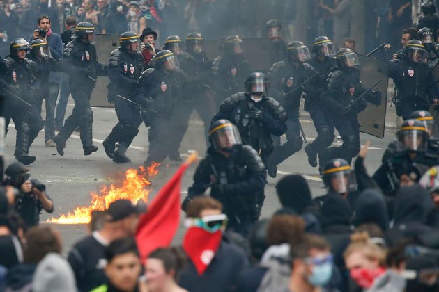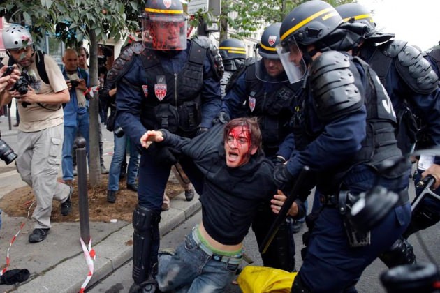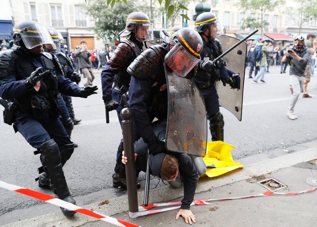 Paris ve Nantes'daki gösterilerde polisin göstericilere ve gazetecilere sert muamelede bulunduğu, birçok göstericinin yüzünden, kolundan ve bacağından yaralandığı gözlemlendi.