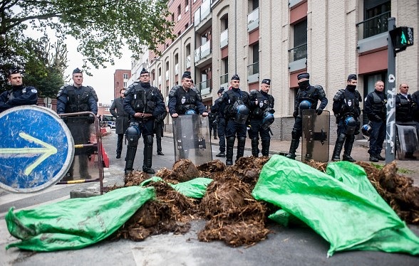 Fransa'da günlerdir devam eden grevin yanı sıra, protesto eylemleri de devam ediyor. Çalışma saatlerinin uzatılmasını içeren yasa düzenlemesi, Sosyalist partinin binasının önüne tezek bırakılarak protesto edildi.
