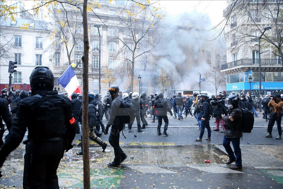 Polis, restoranın çevresinde barikat kurarken, göstericiler, polise şişe ve benzeri nesneler fırlattı. Polis ise göstericilere göz yaşartıcı gaz ile karşılık verdi. Protestocular, ayrıca Paris'teki Credit Agricole banka şubesine baskın düzenledi.