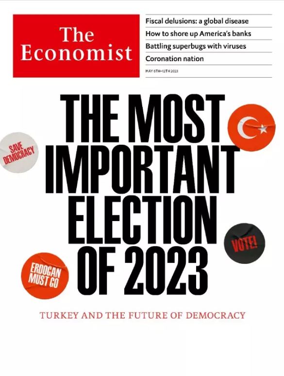 The Economist, bugün çıkan sayısının kapağında Türkiye'deki seçimlere işaret ederek, "2023'ün En Önemli Seçimleri-Türkiye ve Demokrasinin Geleceği" başlığını kullandı.