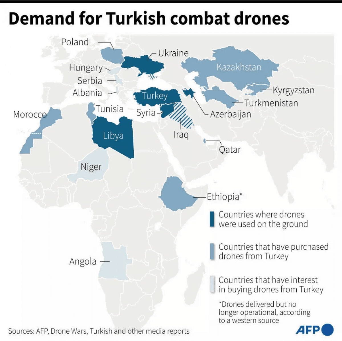 Paris merkezli AFP haber ajansı, dünya genelinde Türkiye'nin SİHA'larına olan ilgiyi gündeme getirdi.