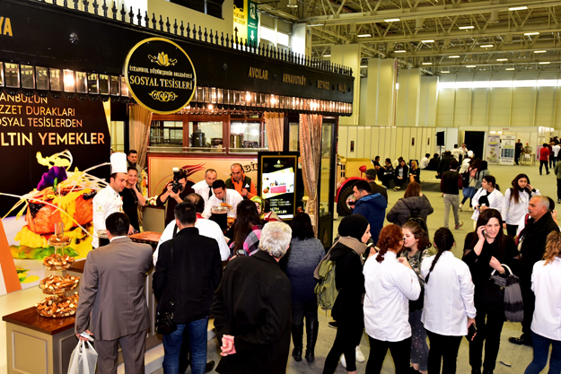 Şefler, uluslararası düzeyde gerçekleşen gastronomi yarışmalarında altın madalya için tüm hünerlerini sergilerken, bir yandan da gastronomi dünyasının öncü firmaları, stantlarında ziyaretçileri ağırlıyor.Geçtiğimiz yıllarda olduğu gibi bu yıl da fuarın en göz alıcı stantlarından biri İBB Sosyal Tesisler standı. Gerek tasarımıyla gerekse fuar ziyaretçilerine yaptığı ikramlarla göz dolduran Sosyal Tesisler standı, bir an bile boş kalmıyor.