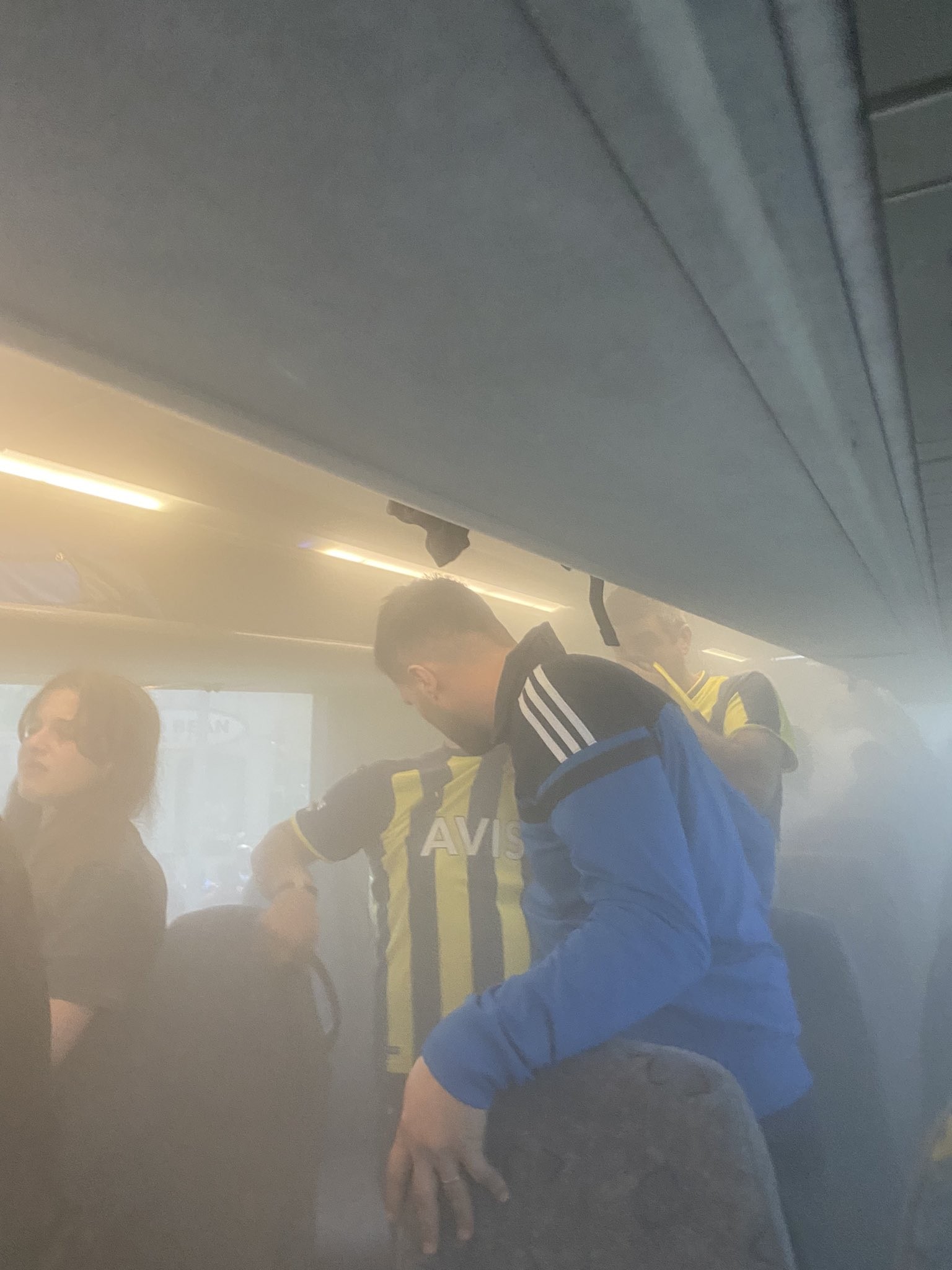 Otobüs içinde Fenerbahçeli bir taraftarın kaydettiği görüntüler, yolcuların yaşadığı zor anları gözler önüne serdi.