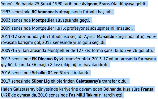 Fransa doğumlu Faslı futbolcu Younes Belhanda, 2017 senesinde Süper Lig ekiplerinden Galatasaray ile sözleşme imzaladı.