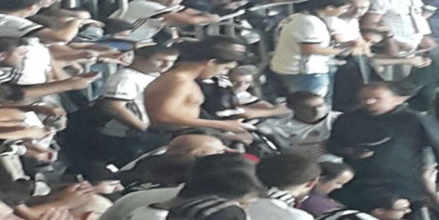 Galatasaraylı taraftarlar, tribünde Beşiktaşlı bir grup taraftarın saldırısına maruz kaldı. Forması zorla üzerinden çıkarttırılan iki genç, tribünden de kovuldu.
