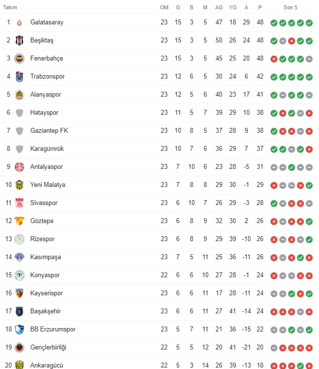 Güncel Puan Durumu;