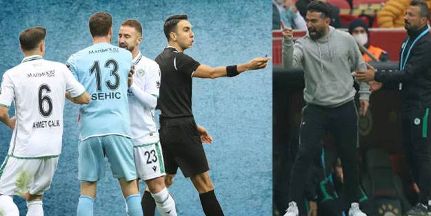 4. dakikada Galatasaray, Mostafa Mohamed'in attığı golle 1-0 Konyaspor'un öne geçti. Konyasporlu futbolcuların hakem Arda Kardeşler'e pozisyonun faul olduğuna dair yoğun itirazları vardı. Hakem Arda Kardeşler, santrayı gösterdi.