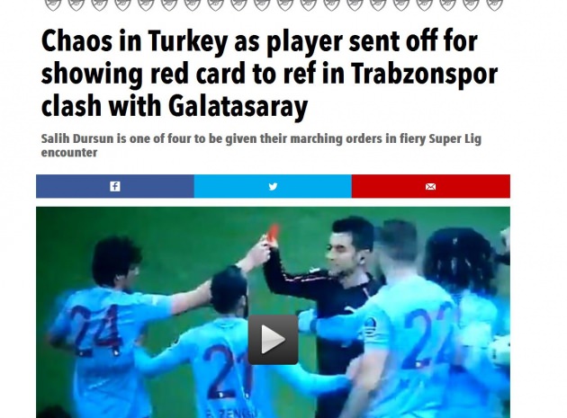 Galatasaray-Trabzonspor maçında karşılaşmanın hakemi Deniz Ateş Bitnel'in kırmızı kartını alarak hakeme gösteren Bordo-mavili futbolcu Salih Dursun, yaptığı hareket ile Avrupa basınında da gündem oldu.