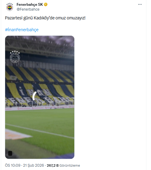 Fenerbahçe'nin paylaşımında "Pazartesi günü Kadıköy'de omuz omuzayız! İnan Fenerbahçe" ifadeleri yer aldı.
