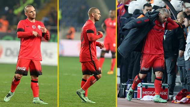 Atışı Selçuk'un yapmasına çok sinirlenen Sneijder, hemen kenara, "Beni çıkarın" işaretini yaptı. Teknik direktör Mustafa Denizli de bunun üzerine Hollandalı oyuncuyu çıkardı ve yerine Bilal Kısa'yı oyuna aldı.