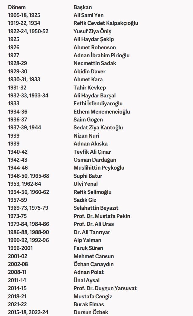 Kulüp tarihindeki yönetim dönemlerine göre başkanlar şöyle: