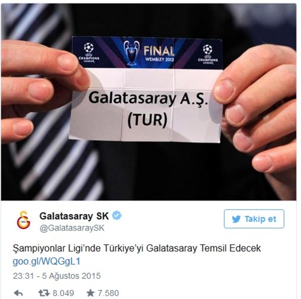Sarı-kırmızılı ekibin sosyal medya hesabından Fenerbahçe'ye yönelik ikinci mesaj bundan bir kaç dakika sonra yayınlandı ve "Şampiyonlar Ligi’nde Türkiye’yi Galatasaray Temsil Edecek" ifadeleri kullanıldı.