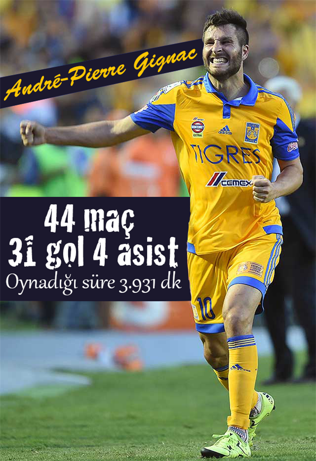 Ancak Gignac tüm bu maddi faktörlerin yanı sıra transfer olduğu Tigres takımında muhteşem bir performans sergiledi. Fransız golcü çıktığı 44 maçta 31 gol atarken 8 de asist yaptı. Oynadığı oyunla sarı kırmızılı yönetimi pişman ettiren Gignac, Euro 2016'da da Benzema'nın yokluğunda Fransa'nın en büyük gol umudu olacak.