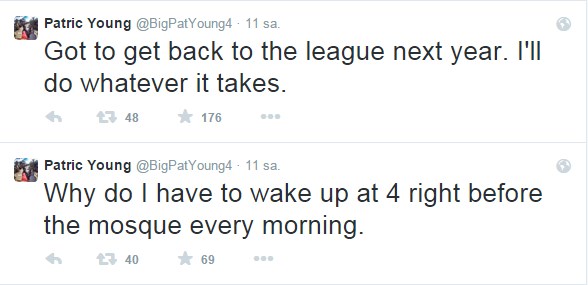 Mikro Blog sitesi Twitter aracılığı ile ezan sesinden duyduğu rahatsızlığı dile getiren Young, "Neden her sabah saat 4'te camiden gelen sesle uyanmak zorundayım? Önümüzdeki sezon geri dönmek zorundayım ve bunun için ne gerekiyorsa yapacağım." ifadelerini kullandı.