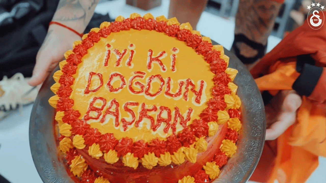 Sarı-kırmızılı futbolcular, 2 Nisan tarihinde doğan Ali Koç için "İyi ki doğdun başkan" yazan pastayla fotoğraf verdi.
