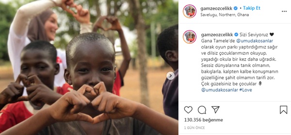 "Gana Tamele’de Umuda Koşanlar olarak oyun parkı yaptırdığımız sağır ve dilsiz çocuklarımızın okuyup, yaşadığı okula bir kez daha uğradık. Sessiz dünyalarına tanık olmanın, bakışlarla, kalpten kalbe konuşmanın güzelliğine şahit olmamın tarifi zor. Çok güzelsiniz be çocuklar."