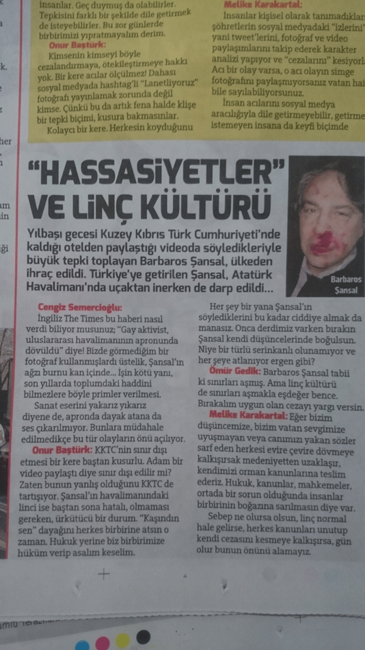 Bu anlamda istediğini alamayan Aydın Doğan hala bir şeyleri tetikleye bilmek için tekrar denemelere başladı. Hürriyet Gazetesi’nin magazin eki olan ‘Kelebek’te yer alan bir makalede gay modacı bozuntusunun yaptığı kışkırtmadan hiç bahsetmeden, sanki sırf karşıt görüşlü olduğu için tepkilere maruz kalmış gibi bir algı operasyonu başlatıldı. Kara propaganda da gay Barbaros’a sahip çıkan gazete ‘Hassasiyetler ve linç kültürü’ başlığını kullandı.