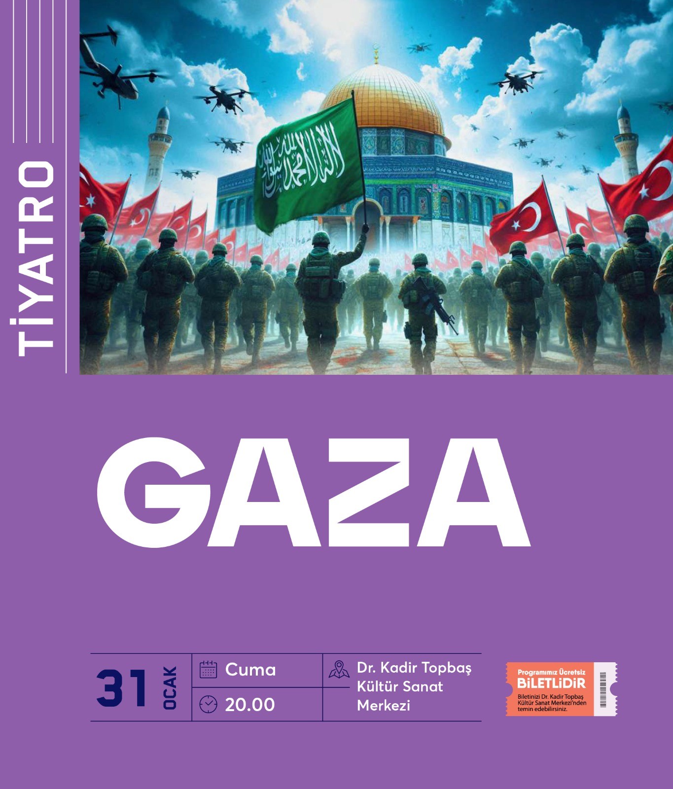 İçeriğinde tiyatro, müzik, barkovizyon gösterisi ve anlatı bulunan GAZA'nın, senaryosunu İzzettin Akpolat, sanat yönetmenliğini Burak Gün ve Müziklerini Fethullah Badem yaptı. Barkovizyon çekimlerinde ise profesyonel dizi ve sinema oyuncuları, Kadir Yaşar Uzer, Tevfik Cemal İnceoğlu ve Yesilçam oyuncularından Hasan Yıldız yer alıyor.
