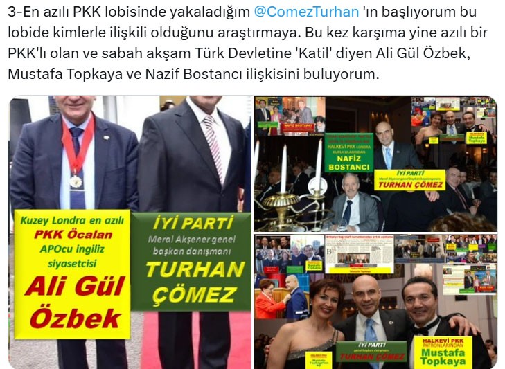 En azılı PKK lobisinde yakaladığım @ComezTurhan'ın başlıyorum bu lobide kimlerle ilişkili olduğunu araştırmaya. Bu kez karşıma yine azılı bir PKK'lı olan ve sabah akşam Türk Devletine 'Katil' diyen Ali Gül Özbek, Mustafa Topkaya ve Nazif Bostancı ilişkisini buluyorum.