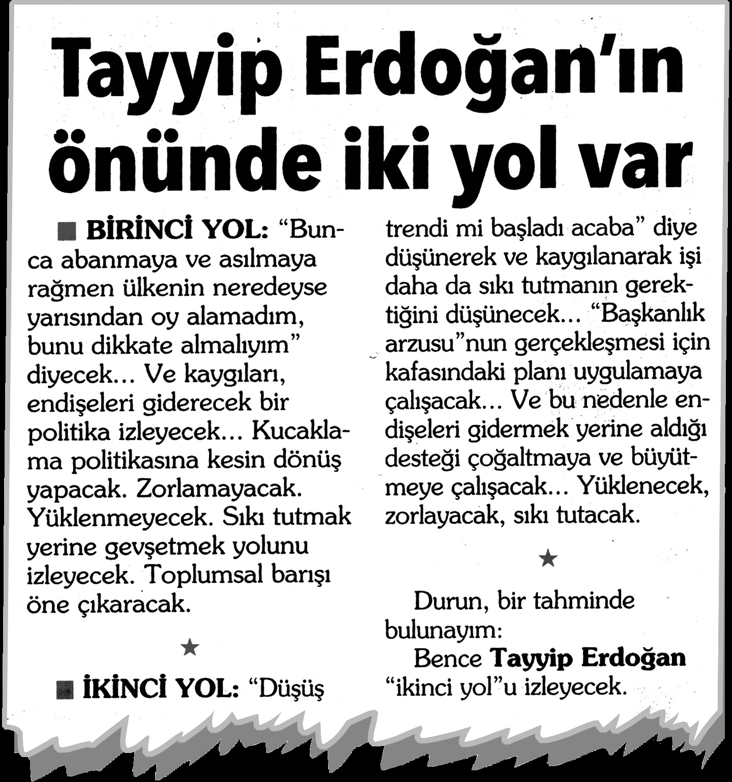 Tayyip Erdoğan, partisinin 4 ay önce mahalli seçimlerde aldığı 19.434.750 oyu, 4 ay sonra 1.565.510 artırarak 21.000.260 yapmış.. Hergele ise, “Sandığa gitmeyenler AK Partiliyse de, değilse de AK Parti açısından sıkıntı var” diye yazıp, bir de “İki yol var” diye akıl vermeye kalkışmış!. Hergele, otur biraz araştırma yap da öyle yaz!