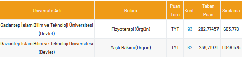 Gaziantep İslam Bilim ve Teknoloji Üniversitesi 2021 taban puanları ve yüzdelik dilimleri nelerdir?