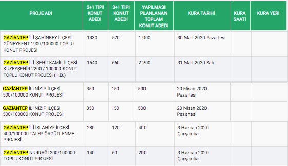Gaziantep Şehitkamil için 2.200 adet konut kura çekiliş tarihi, 31 Mart 2020 Salı günü yapılacaktır.
