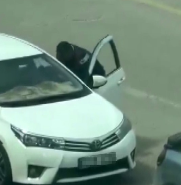 Gaziantep'te bir şahsın, trafikte tartıştığı başka bir şahsı aracında otururken defalarca darp ettiği anlar cep telefonu kamerasına yansıdı.