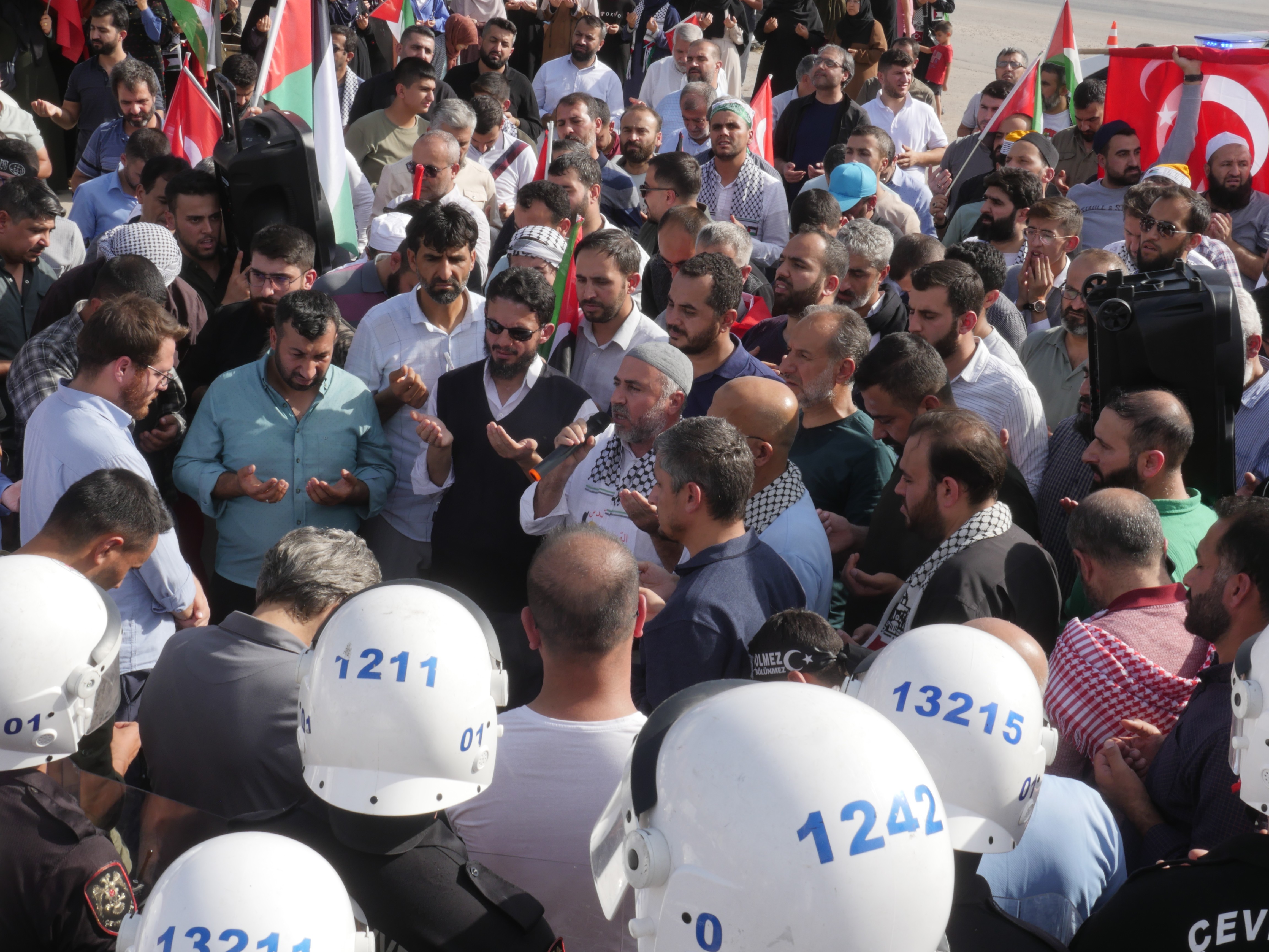 İsrail'in Filistin'e yönelik saldırılarına tepki için Gaziantep'te başlayan konvoy, İncirlik 10. Tanker Üs Komutanlığının bulunduğu Sarıçam ilçesi İncirlik Mahallesi'ndeki kavşakta durduruldu.Polis ekipleri, araçlarından inip İncirlik Üssü'nün önüne yürümek isteyen grubun geçişine izin vermedi.
