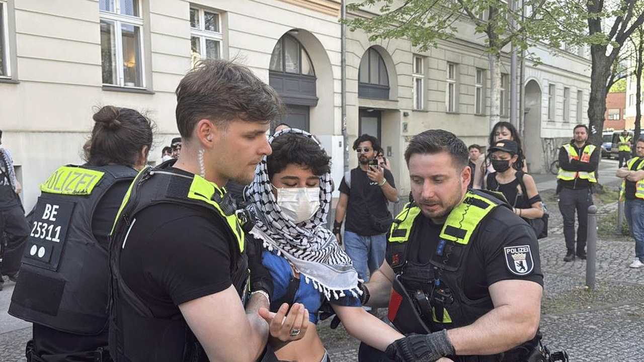 Nisan ayında Humboldt Üniversitesi'nde Gazze protestolarına katılan öğrenciler gözaltına alınmıştıFotoğraf: Erbil Basay/Anadolu/picture alliance