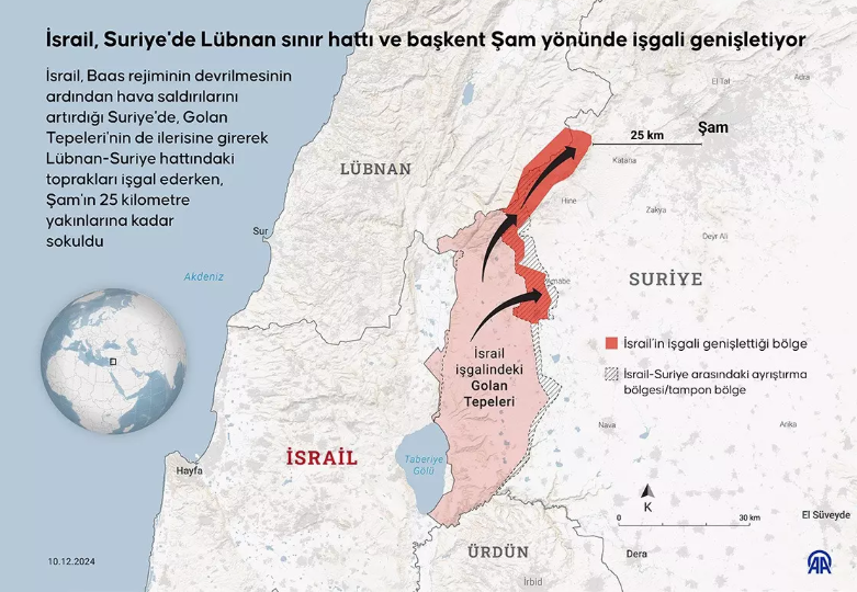 ESED REJİMİNİN DEVRİLMESİ SONRASI PANİKLEYEN İSRAİL SURİYE'DE İŞGALİ GENİŞLETMİŞTİ