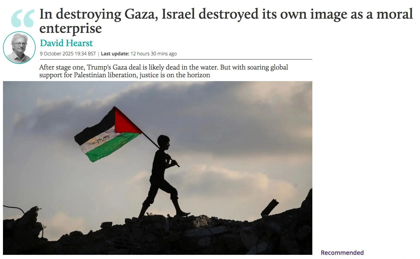 Londra merkezli middleeasteye sitesinin yazarı David Hearst, Trump’ın ateşkes anlaşmasının şovunu yaptıktan sora büyük ihtimalle suya düşeceğini söylerken İsrail’in Gazze ile birlikte tüm imajını da yıktığını belirtti..