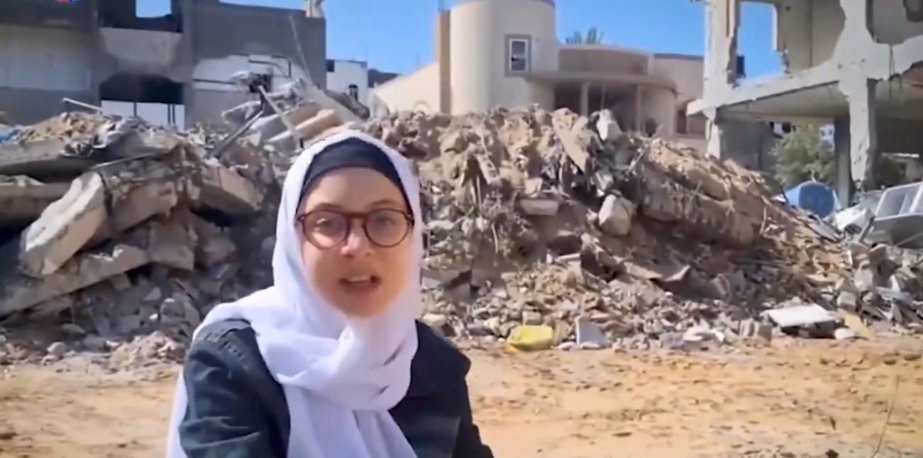 Gazzeli Tesnim yıkılmış binaların arasından dünyaya Türkçe mesaj verdi.