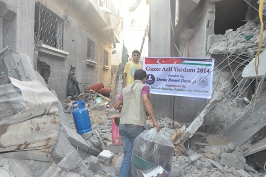 Deniz Feneri Derneği, İsrail saldırılarına maruz kalan binlerce Gazzeliye ekmek, su, üçlü ocak, tüp gaz ve mutfak malzemesi ulaştırıyor.