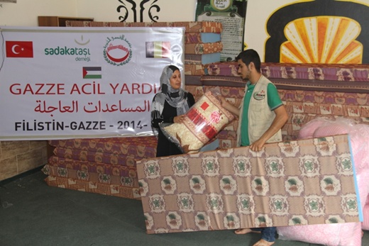 Gazze'de yaşananlara kayıtsız kalmayan ve Gazzelileri yalnız bırakmayan Sadakataşı Derneği ramazan ayı içersinde dağıtımını gerçekleştirdiği kumanyaların ardından Gazze için acil yardım çağrısında bulundu. Yurtiçi ve yurtdışından olmak üzere birçok STK'nın destek verdiği kampanya kapsamında yardımlar Gazzeye ulaştırılıyor. Toplanan yardımlar ilk olarak okullara ve camilere sığınan Gazzelilere dağıtıldı. Dağıtımı yapılan yardım malzemeleri içersinde yatak battaniye bulunuyor.