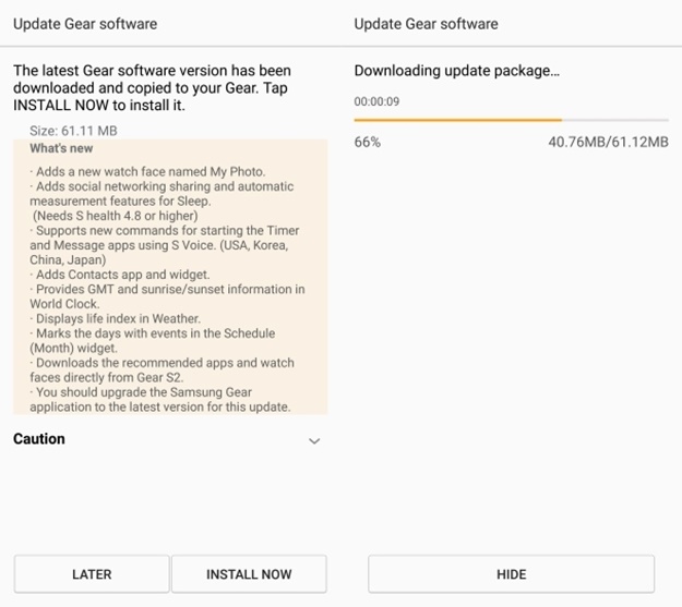 61.1 MB boyutundaki güncelleme Gear S2 Classic için R732XXU2DPFB, Gear S2 Sport versiyonu için ise R730XXU2DPFB yapı numarasına sahip.