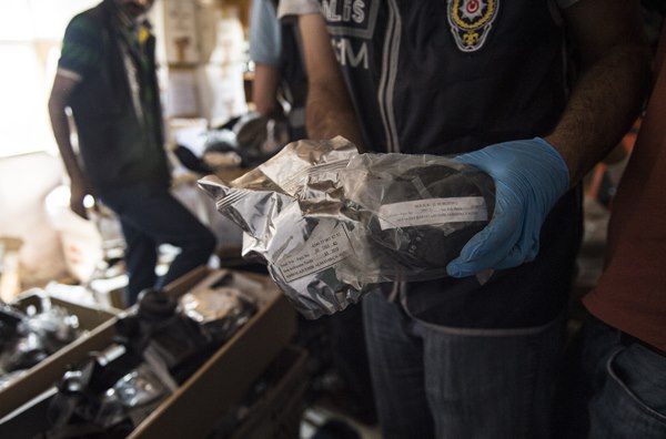 Gecekonduda yapılan detaylı aramada, malzemelerin Makina ve Kimya Endüstrisi Kurumu (MKEK) tarafından üretilen gaz maskeleri ile emniyet ve Sahil Güvenlik Komutanlığı depolarından yasa dışı olarak alındığı tahmin edilen dürbün, askeri uyku tulumu, çevik kuvvet beresi, polis kaskı, NBC eldiven, üzerinde Sahil Güvenlik Komutanlığı ibaresi bulunan zodyak bot, kar botları, askeri branda gibi çok sayıda malzeme ele geçirildi.