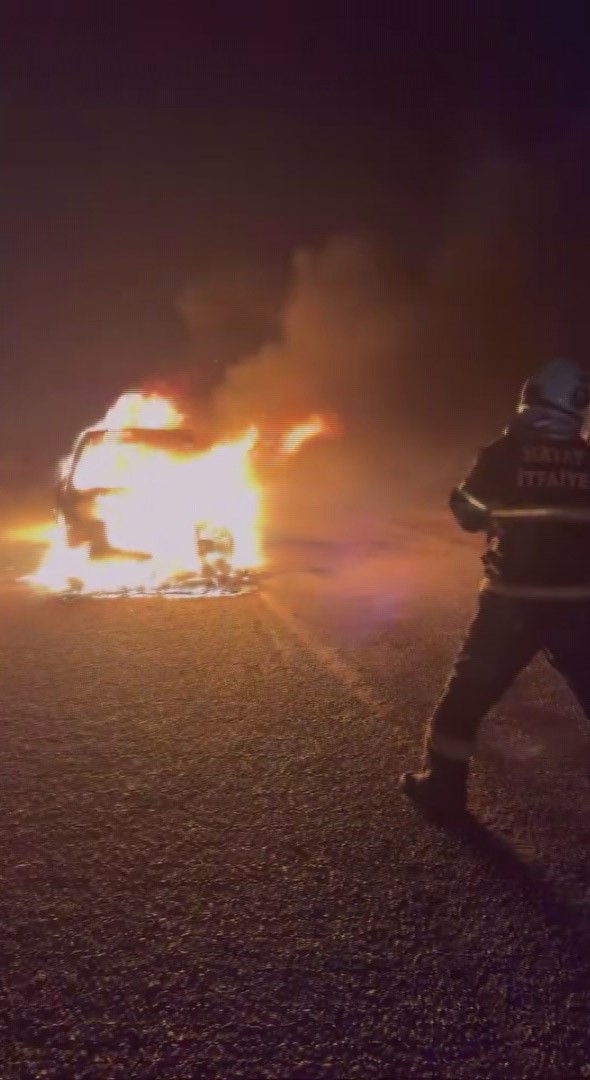 Hatay’da seyir halindeyken yanmaya başlayan otomobil alev topuna döndü.
