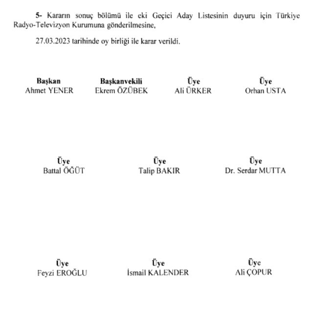 Geçici aday listesine 29 Mart saat 17.00'ye kadar itiraz edilebilecek.
